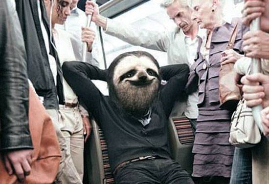 프랑스 파리 시내 대중교통을 운영하는 파리교통공사(RATP)가 제작한 지하철 캠페인 포스터. 열차 내에서 에티켓을 지키지 않는 승객의 머리를 각각 멧돼지·나무늘보·거북이 등 동물의 머리로 희화화했다. 이런 ‘동물’, 한국에서도 종종 볼 수 있다. [사진 파리교통공사]