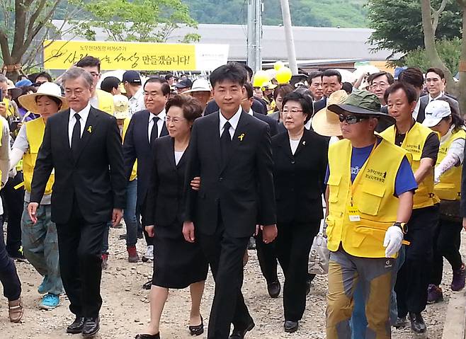 '노무현의 마지막 비서관'인 김경수 새정치민주연합 경남도당위원장은 "김무성 대표가 추도식에 참석한다는 소식을 듣고, 건호씨가 고민 끝에 유족 인사말을 작성한 것으로 안다. 이 과정에 다른 사람과 의논은 없었다. 새누리당 대표가 처음으로 노 대통령 추도식에 참석한 것은 환영한다. 그러나 엔엘엘 발언을 당사자인 그가 아무런 반성이나 사과도 없이 그저 왔다 가는 것은 노 대통령 추도식마저 정치적으로 이용하려 하는 것으로 비칠 수 있다. 실제로 김무성 대표는 추도식에 왔다가 돌아갈 때까지 건호씨 등 유족에게 그 어떤 말도 하지 않았다"고 말했다. 김해/최상원 기자 csw@hani.co.kr
