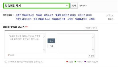국내 최대 포털 네이버에도 맞춤법 검사기가 있다. 500자 내외의 단어까지 입력가능하며 모바일 앱도 존재한다.