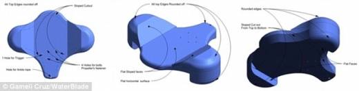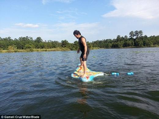 보도에 따르면 '워터 블레이드'(Water Blade)라고 명명된 이 기기는 수영장이나 호수위에 띄우고 마치 오리가 걷는 것처럼 뒤뚱뒤뚱 물 위를 걸을 수 있는 기능을 갖췄다.