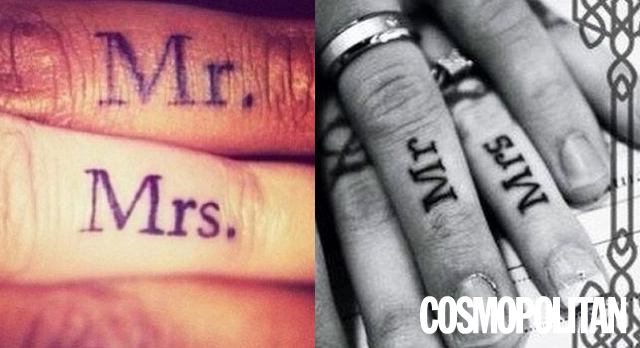 '이 사람 내꺼'라고 말하는 표시 중 이보다 더 확실한 타투가 있을까? 하지만 약지 손가락에 새긴 'Mr&Mrs'는 남녀를 상징한다는 것을 쉽게 짐작할 수 있고, 훗날 촌스럽다고 생각될 수도 있다. 그러니 '지워버리고 싶은 타투'가 되지 않기 위해 심사숙고 한 후 진행하는 게 좋다. 특히 순식간에 타오른 사랑(!)에 후회하고 싶지 않다면 말이다.