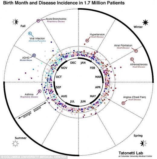 컬럼비아 대학 연구팀은 최근 미국 ‘의료정보학회’ (American Medical Informatics Association) 저널에 탄생 계절과 달에 따라 일부 질환의 발병률이 달라진다는 내용의 논문을 발표했다.