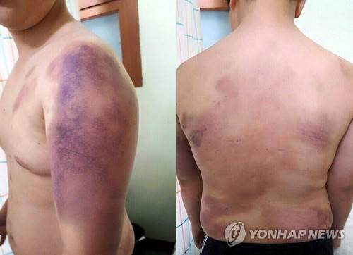 피해자 김군은 "지난 16일 오후 5시께에는 물 적신 수건으로 입을 막고, 테이프로 머리부터 발끝까지 차려자세로 감긴 뒤 무릎을 꿇고 옷걸이로 허벅지를 맞았다"고 진술했다.