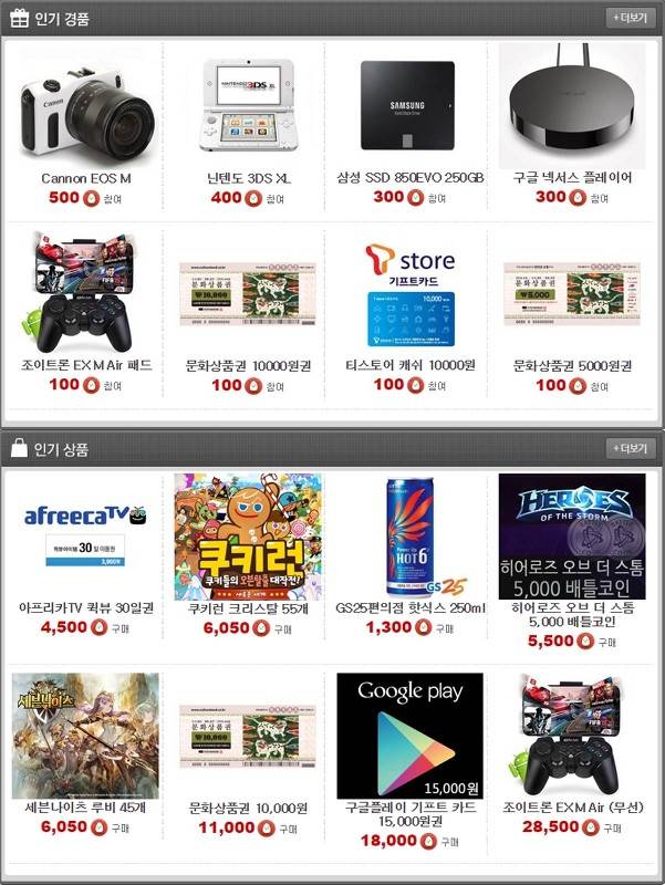 헝그리앱에서 진행하는 다양한 이벤트와 커뮤니티 활동을 하면 헝그리앱 내에서 현금처럼 쓸 수 있는 밥알 포인트를 획득할 수 있다. 획득한 밥알 포인트는 ‘헝그리앱 헝앱샵’에서 ‘리그오브레전드 RP’, ‘문화상품권’, ‘구글플레이 기프트카드’를 비롯해 각종 게임 아이템, 아프리카TV 퀵뷰, 롯데리아 버거 세트, 던킨도너츠 팩 등, 게임 및 실생활에 필요한 유용한 상품들을 구매할 수 있다.