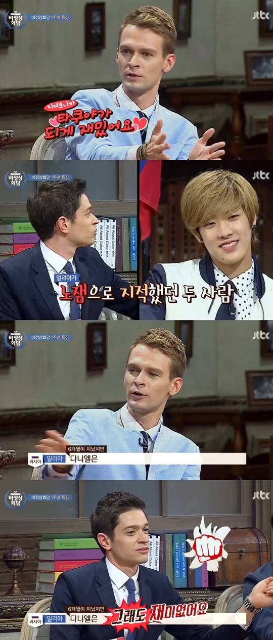 [티브이데일리 하홍준 기자] '비정상회담'의 일리야가 타쿠야와 다니엘의 '노잼' 별명에 대해 언급했다.