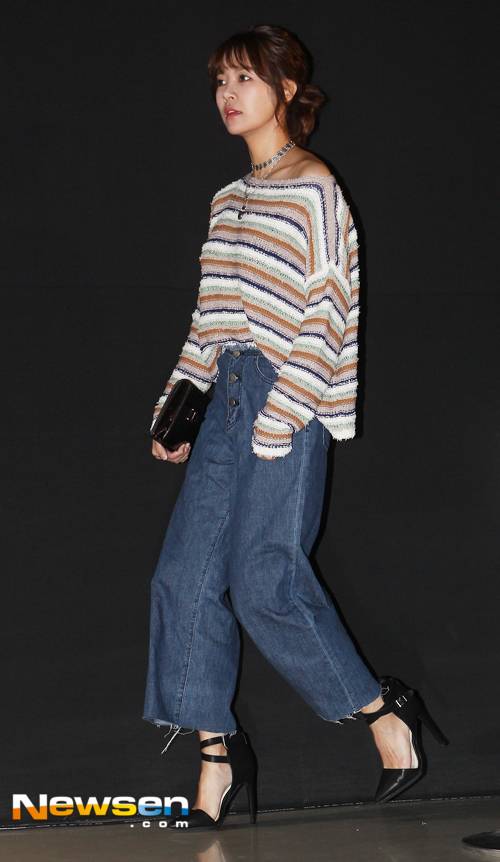 또 최윤영도 와이드 데님 팬츠에 어깨를 슬쩍 드러낸 니트를 매치해 설리와는 또 다른 느낌을 전달합니다. 안혜경은 여성스러운 핑크톤 와이드 팬츠로, 박신혜는 블랙 컬러의 와이드롱팬츠로 긴 다리를 뽐냈습니다. 결혼을 앞둔 예비신부 이소연, 달콤한 신혼생활을 즐기고 있는 패셔니스타 김나영도 흘러내리는 듯한 와이드팬츠를 입어 취재진의 스포트라이트를 받았습니다.