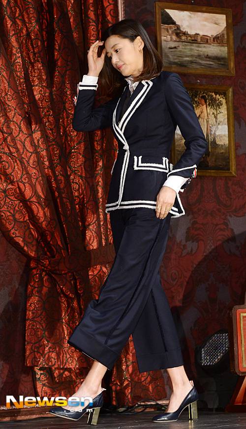 6월 22일 영화 '암살' 제작발표회에 참석한 전지현은 블랙 컬러의 재킷에 발목이 드러나는 와이드팬츠로 패션센스를 과시했습니다. 당찬 여성의 이미지를 선사한 매니시룩에 골드 장식이 들어간 힐로 포인트를 줬네요.