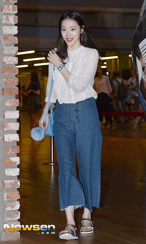 같은날 열린 영화 '연평해전' VIP 시사회에 참석한 설리는 편안하면서도 시원시원한 패션으로 오랜만에 공식석상에 등장했습니다. 와이드 데님팬츠에 메탈릭 샌들로 설리만의 '섬머룩'을 완성했습니다. 걸그룹다운 귀여움을 살린 캐주얼 스타일이 여성팬들의 '워너비'가 되기에 부족함이 없네요.