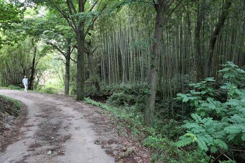 | ▲ 대숲을 품은 너브실마을의 길. 애일당과 고봉학술원의 뒷편 풍경이다. |
