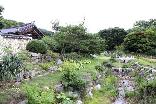 | ▲ 고봉서원 앞 풍경. 말끔하게 단장된 물길과 어우러져 있다. |