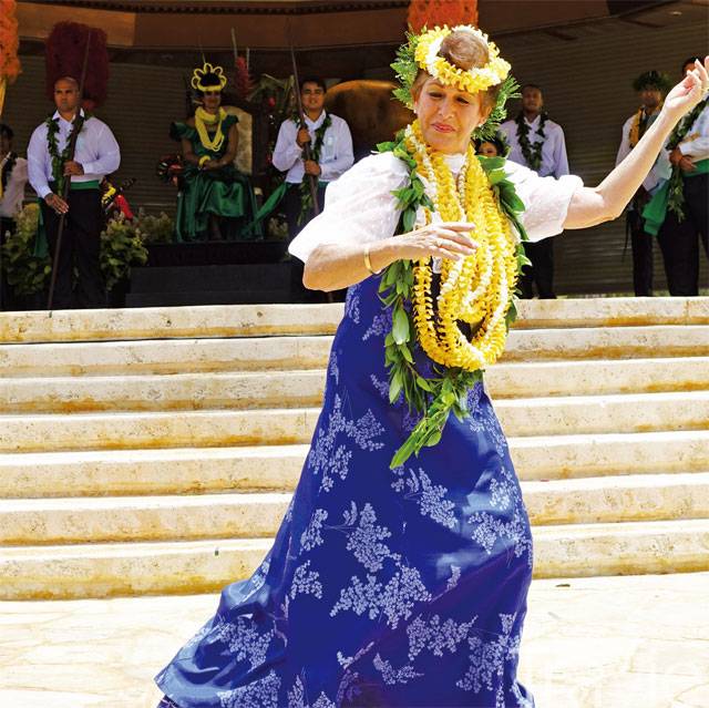 레이 축제에서 훌라를 선보이고 있는 2014년 레이퀸