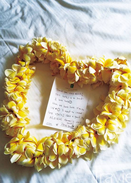 여행 마지막 날 밤, 귀국 준비에 여념 없는 와중에 문득 보니 딸이 없다. 테라스에 오도카니 앉아 어둠 내린 바다를 바라보며 훌쩍인다. 돌아가려니 너무 슬프단다. 다음날 아침 딸은 또 꾸물댄다. 우리 객실을 담당했던 호텔 룸메이드에게 편지를 남긴다. 레이를 하트 모양으로 만들어 침대 위에 놓고 그 안에 편지를 넣는다. 매일 마주치고 대화하면서 정이 들었던 룸메이드다. 왜 딸 하나만 낳았느냐는 질문에 한국에서는 자식 키우는 데 돈이 너무 많이 들어서라고 대답하면, 어디 돈만 들더냐며 맞장구치는 식의 대화가 떠올라 풋 웃고는 객실을 나선다. 우리 오늘 떠나요, 고마웠어요, 그녀에게 인사한다. 자기 역시 고맙다더니, 하와이만큼 공부하기 좋은 데도 없으니 꼭 다시 오라고 딸에게 말하고는 엘리베이터 버튼을 대신 눌러 준다. 엘리베이터 문이 닫히니 딸은 또 울컥 북받친다. 마할로 하와이!
