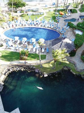 돌고래가 헤엄치는카할라호텔대중적이고 북적대는 와이키키 소재 호텔들과 분위기가 다르다. 탤런트 이영애가 결혼식을 한 곳으로도 유명하며, 미국 오바마 대통령을 비롯한 유명인사들이 많이 다녀갔다. 고급 웨딩촬영 및 허니문 리조트로서의 색채가 강하다. 자녀 동반 가족단위 여행객들로부터 인기인데, 리조트 내에 돌고래 대여섯 마리를 키우고 있다. 돌핀 체험 프로그램이 인기다.www.kahalaresort.com