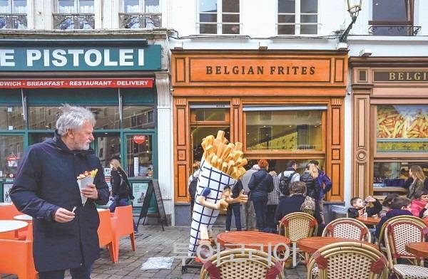 | ▲ 유명한 벨기안 프라이드 숍에 많은 사람들이 줄 서 있는 모습. |