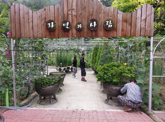 <자연과 사람> 안에는 까만 씨앗이 달려 보통 보는 개나리와 확연히 구분되는 야생 개나리, 작고 동그란 전구 같은 모양으로 복실복실하게 매달린 방울토마토, 줄기가 10미터 이상 올라간다는 제비콩 등등 눈길을 끄는 식물들이 줄지어 서 있다.