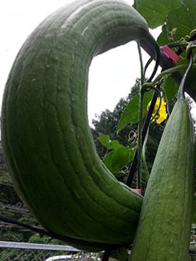 | ▲ 아래 받침대에 얹히면서 둥그렇게 자란 수세미 |