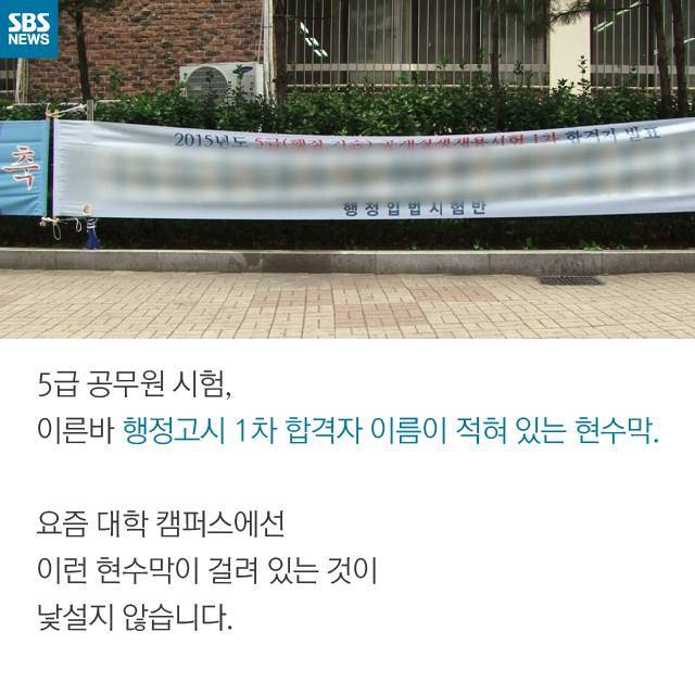 5급 공무원 시험, 이른바 행정고시 1차 합격자 이름이 적혀 있는 현수막.