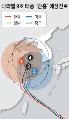 태풍 '찬홈' 진로, 韓美日 엇갈린 예보