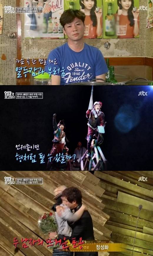 이날 정상훈은 절친한 친구 정성화와 무명 시절 단골 술집을 찾아, 술잔을 기울였다. 정상훈은 뮤지컬로 큰 상을 받았던 정성화의 이야기를 꺼내며 당시 부러움과 열등감을 느꼈다고 고백했다.