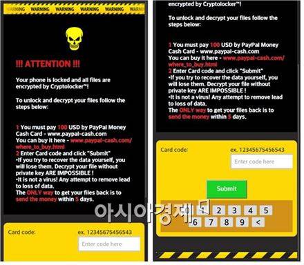 안랩은 14일 안드로이드 스마트폰 사용자의 데이터를 빼내 금전을 요구하는 '스마트폰 랜섬웨어' 사례가 발견돼 이용자들의 주의가 필요하다고 밝혔다.