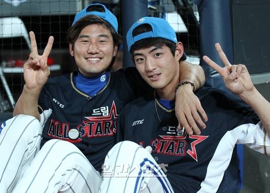 그는 이날 드림 올스타의 막내였다. 본분(?)에 충실했다. 선배들이 누상에 출루하며 보호 장비를 받기 위해 1루 베이스로 뛰어나가기도 했다. 또 선발 투수 유희관이 더그아웃 앞에서 캐치볼을 할 때 공을 받기도 했다.
