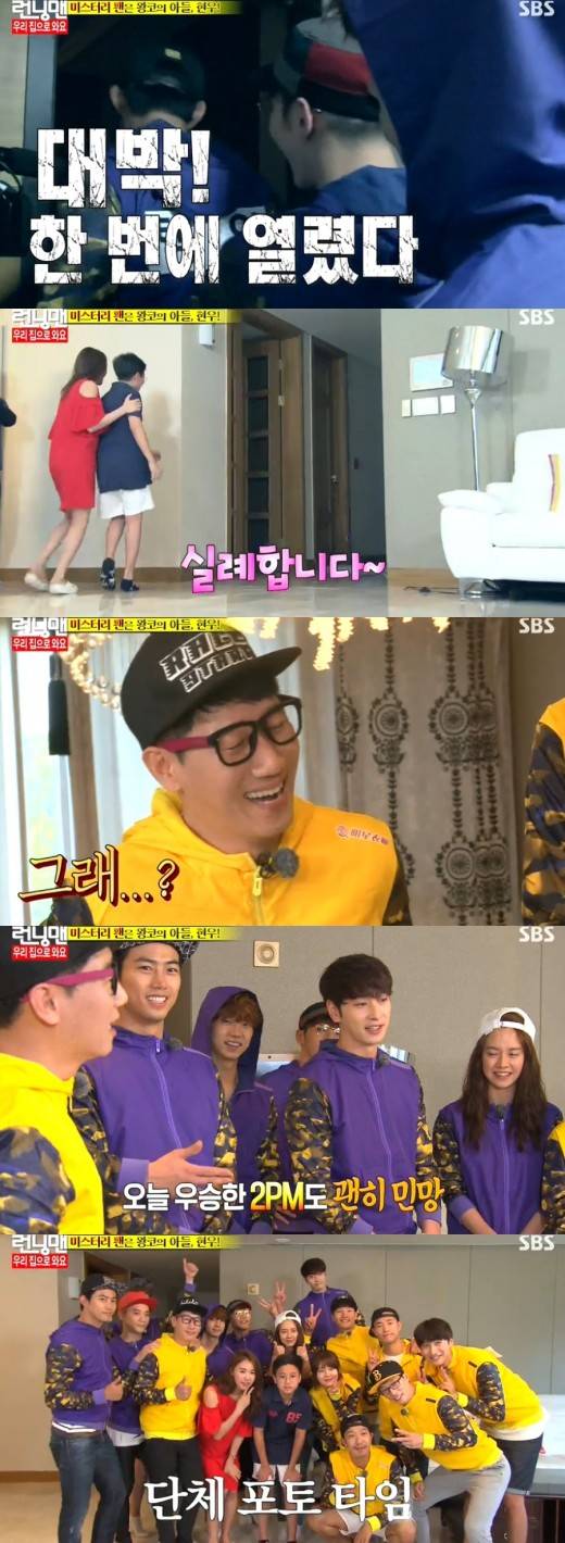 19일 방송된 SBS '일요일이 좋다-런닝맨'(이하 '런닝맨')에는 2PM(준케이, 닉쿤, 택연, 우영, 준호, 찬성)과 백진희가 게스트로 참석한 가운데 '우리집으로 와요' 편으로 꾸며졌다.