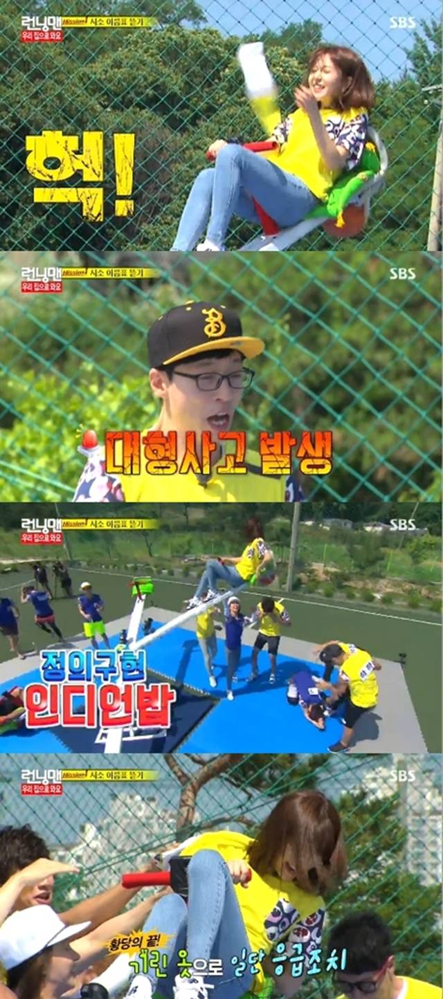 '런닝맨' 백진희 옷이 찢어졌다.