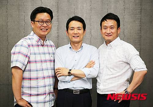 【뉴욕=뉴시스】노창현 특파원 = 한국 홍보 전문가 서경덕 성신여대 교수와 방송인 서경석씨가 종합교육기업 에듀윌과 힘을 모아 독일 베를린 선교교회 내 한글 공부방을 지원했다고 21일 밝혔다. 서경덕-서경석 콤비는 일본 교토의 한글 공부방 지원을 시작으로 모스크바, 상파울루, 토론토, 마닐라, 호치민, 방콕, 타슈켄트 등 전 세계 주요 도시 11곳에 한글 공부방을 지원해 왔다. 특히 올해부터는 서경석씨의 부인인 그래픽 디자이너 유다솜씨가 '한글 공부방' 간판 디자인을 재능 기부로 돕고 있다. 왼쪽부터 서경덕 교수, 에듀윌의 양형남 대표, 방송인 서경석. 2015.07.21. <사진=서경덕교수 제공>