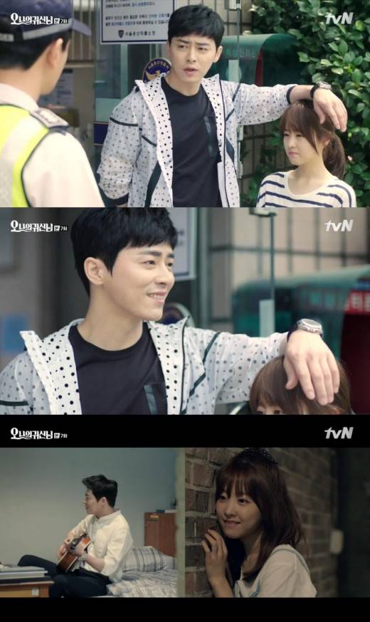 24일 방송된 tvN 금토드라마 '오 나의 귀신님' 7회에서는 봉선(박보영)의 요리스승을 자처해 그녀와 달콤한 시간을 보내는 선우(조정석)의 모습이 그려졌다.
