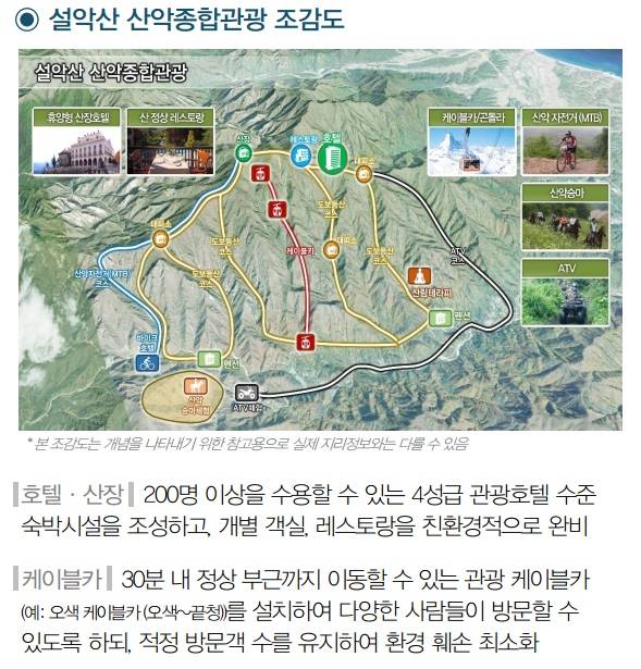 | ▲ 전경련이 발표한 설악산 산악종합관광 조감도에 설악산 정상 휴양형 산장호텔 건설 계획이 포함돼 있다. | ||