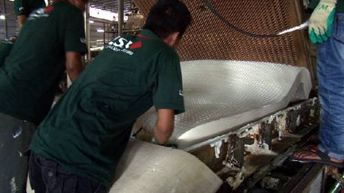 | 말레시아 최대의 라텍스 매트리스 생산 공장은 100도의 스팀 열기를 견뎌내야 하는 힘든 작업장이다. EBS 제공 |