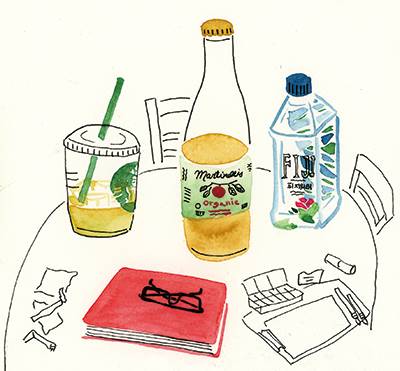 그 모습을 보고 나서부터일까? 카페의 조용한 풍경을, 지하철에서 스마트폰을 보는 사람들을, 책상 위에 내 손이 탄 물건들을 수첩 위 작은 세계에 옮겨 그려보고 싶어진다.