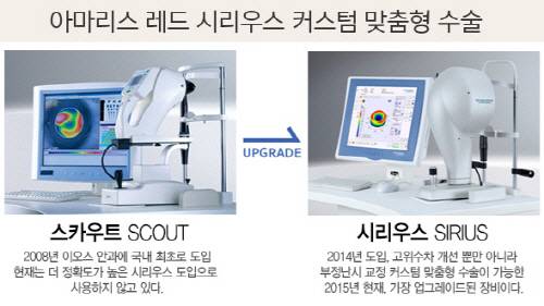 그런데 김 씨와 같은 이유로 수술을 미루었던 근시나 난시 환자들에게 최적화된 수술 방법이 소개 발표되었다. 바로 고도근시, 고도난시 또는 부정난시 때문에 최대 교정시력이 좋지 않은 경우 더 좋은 시력을 달성할 수 있는 수술방법이 연구 발표된 것이다. 가장 빠른 레이저속도와 최소빔 레이저 장비인 '아마리스레드 1050RS'와 3차원 각막지형도 장비인 '시리우스(SCHWIND SIRIUS)'를 결합한 아마리스레드 시리우스 커스텀 수술법이다.