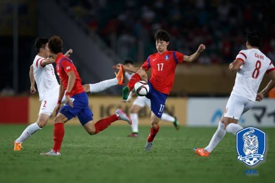 한국은 중반까지 중국과 팽팽한 허리싸움을 펼쳤다. 홈팬들의 일방적인 응원을 등에 업은 중국에 조금은 밀리는 듯한 경기를 펼쳤다. 수비는 안정감이 있었지만 공격에서 이재성 외에 이렇다할 모습을 보여주는 이가 없어 아쉬움을 남겼다.