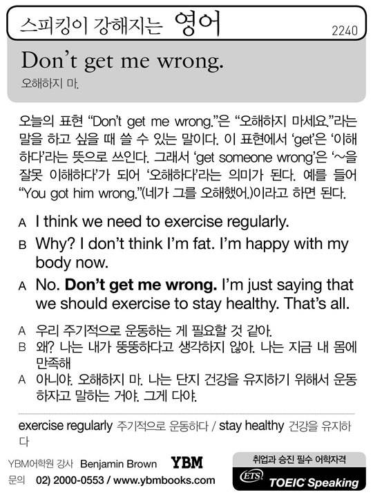 [스피킹이 강해지는 영어] Don't get me wrong.