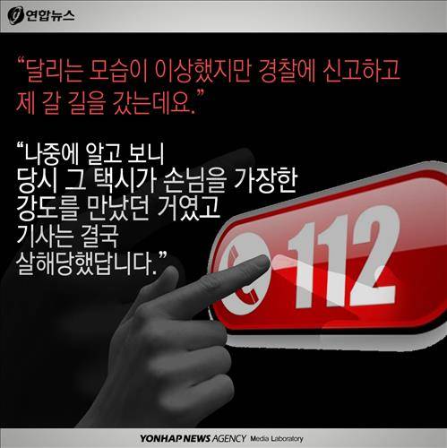 "나중에 알고 보니 당시 그 택시가 손님을 가장한 강도를 만났던 거였고 기사는 결국 살해당했답니다"
