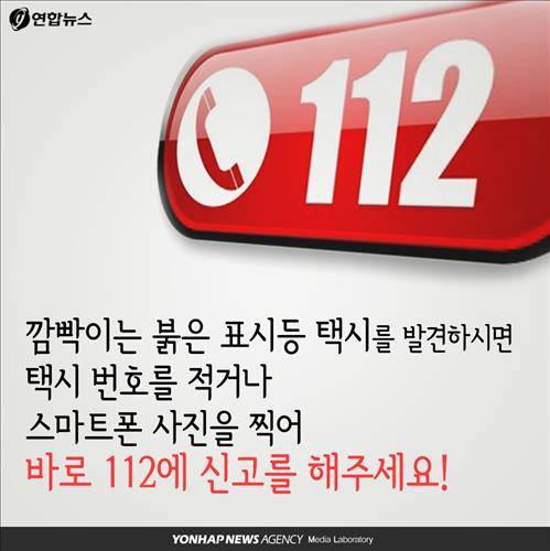 깜빡이는 붉은 표시등 택시를 발견하시면 택시 번호를 적거나 스마트폰 사진을 찍어 바로 112에 신고를 해주세요!