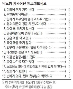 김세화 국제성모병원 내분비내과 교수는 "당뇨합병증은 별다른 자각증상이 없이 살며시 다가와 더 무섭다"며 "평소 금주·금연, 규칙적인 운동, 적절한 약물치료 등을 철저히 지켜야 한다"고 말했다.