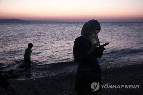 A migrant checks a mobile device after crossing with a dinghy from Turkey to the southeastern Greek island of Kos, Wednesday, Aug. 12, 2015. Dozens of boat people from the Middle East are flowing into the Greek holiday island of Kos from nearby Turkey, joining thousands of refugees camped under wretched conditions. (AP Photo/Yorgos Karahalis)