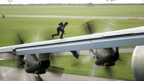 이번에 새로 개봉한 <미션임파서블:로그네이션>에서도 영화 초반 이륙하는 비행기 외부에 매달리는 스턴트연기를 직접 소화해 화제가 되고 있다.