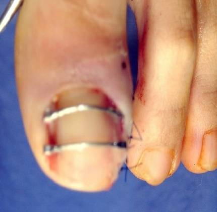 두 가지 형태의 내성발톱은 각각 다른 방법으로 치료해야 한다. 먼저 혈액 순환이 되는지 제일 먼저 확인하는 것이 매우 중요하다. 혈액 순환이 잘되는 경우에는 일반 환자의 내성발톱을 치료하는 것과 같이 파고 들어가는 발톱을 제거하거나 성장판을 동시에 제거하는 수술을 한다. 또는 내성발톱을 펴고 평평하게 만들어주는 조갑성형술을 시행하면 된다.