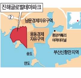 경남 진해시에 들어설 글로벌테마파크 조성사업이 중국 자본의 투자 등으로 탄력을 받고 있다. 정부가 진해를 복합리조트 사업대상 후보지로 확정한 것도 개발에 속도를 내는 요인으로 작용하고 있다.