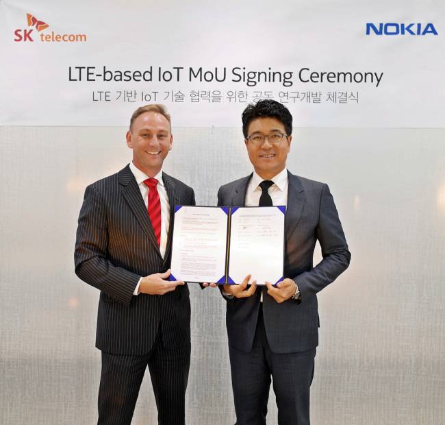 Park Jin-hyo, head of SKT's network technology research and development center, said in a press release that "the mobile carrier hopes that the latest MOU will lay the foundation for the two partners' growth in the Internet-of-Things era."