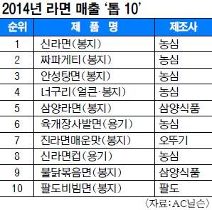 그동안 국내 라면시장은 새로운 경쟁에서 승리한 브랜드가 ‘롱런’하는 것이 일반적이었다. 지난해 매출 ‘톱10’ 라면 브랜드만 봐도 삼양식품의 불닭볶음면(9위·2012년)을 제외하면 모두 20세기 브랜드다. 1963년 나온 국내 첫 라면 삼양라면이 5위에 오른 것을 비롯해 신라면(1위·1986년), 짜파게티(2위·1984년), 안성탕면(3위·1983년), 너구리(4위·1982년) 모두 경쟁에서 살아남은 장수 브랜드다. 최용민 팔도 마케팅팀장은 “지금까지 라면 역사를 보면 살아남는 브랜드가 끝까지 가는 경우가 많았다”며 “시장 생성 초기 점유율을 확보하기 위해 업체 간 경쟁이 치열한 것은 그 때문이다”고 밝혔다.