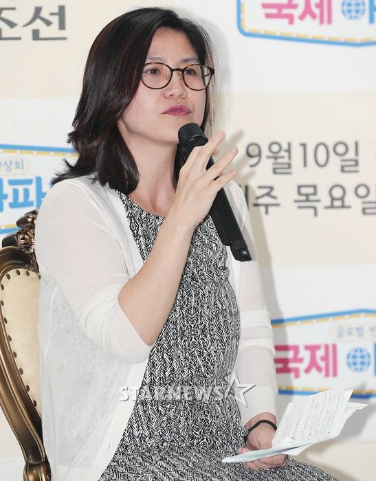 신정현 PD가 4일 오후 서울 마포구 상암동 DMC 디지털큐브 TV조선 스튜디오에서 열린 TV조선 토크쇼 '글로벌 반상회-국제아파트' 기자간담회에 참석해 취재진의 질문에 답하고 있다.