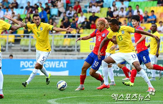 최진철 감독이 이끄는 대표팀은 6일 수원월드컵경기장에서 벌어진 2015 수원 컨티넨탈컵 3차전 경기에서 브라질에 0-2로 패했다.