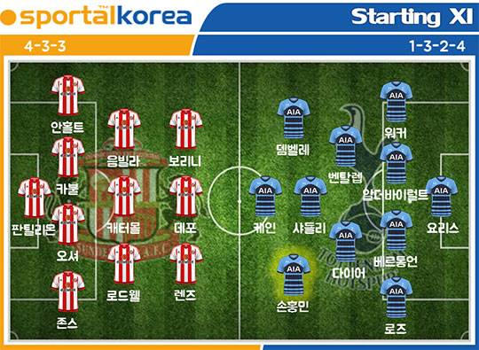 손흥민의 선발 포지션을 두고 중앙 혹은 측면이 거론되고 있다. 확실히 선덜랜드의 무너진 수비라인을 보았을 때 손흥민의 주 포지션인 2선 좌측면이 유리해 보인다. 손흥민이 좌측면 공격자원으로 나올시 맞붙게될 선덜랜드의 잭 로드웰은 올 시즌 안정적인 플레이를 잃었고 미드필더와 수비진을 연결하는 리 캐터몰 역시 최악의 스타트를 보여주고 있기 때문이다.