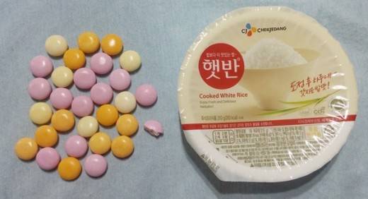 1회 제공량은 4개라는데 멘토스를 4개만 먹을 수 있을리가 없지. 한 알의 칼로리는 10.5Kcal. 한 줄을 다 먹을 경우 147kcal라는 계산이 나온다. 147kcal, 솔직히 얼마나 되는지 감이 안온다. 한국인의 주식인 밥과 비교해보자.