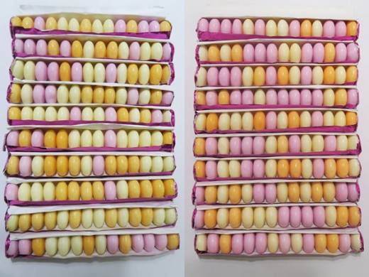 분류작업 결과 딸기맛(분홍) 92개, 레몬맛(노랑) 101개, 오렌지맛(주황색) 87개. 레몬맛과 오렌지맛이 14개 차이로 편차는 크지 않았다. 백분율로 하자면 딸기맛 32.85%, 레몬맛이 36.07%, 오렌지맛 31.07%가 되시겠다.