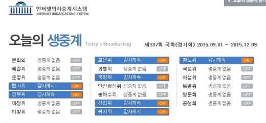 2015년 국정감사는 국회 인터넷의사중계시스템 홈페이지에서 실시간으로 쉽게 시청이 가능하다.